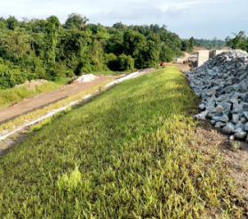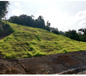 Hydroseeding is the method of embedding seeds onto raw slope face through slurry which is sprayed over the ground surface in a uniform layer to establish vegetation for erosion control. This process is typically done via a hydroseeding tank (mobile slurry mixing tank with pump) which is usually truck mounted. The slurry usually comprises of water, grass seeds, fertilizer and paper mulch.